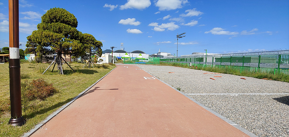 반대편은 공사장이고 역시 펜스로 막아놨다. 항만공사에서도 야영장을 고려한 조경이나 배치를 고려하지 않은 것 같다.