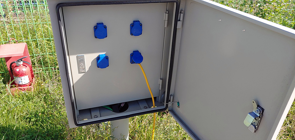 전기는 2 사이트마다 하나씩 설치되어있는데 사이트가 넓다 보니 5미터 전선도 조금 짧을 수 있다.