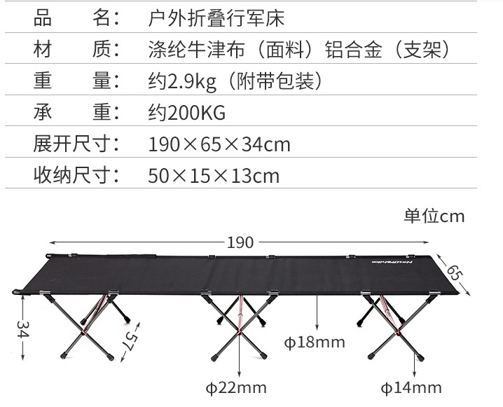 네이처하이크 2019년 신형 야전침대.(가격 474위안, 약 8만원, 중국 현지 타오바오가격)