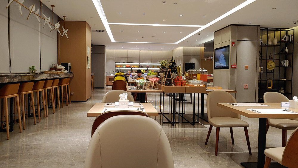 저렴한 가격(400위안, 6.6만원, 조식 포함), 거실과 방, 주방이 딸린 아파트 형태의 호텔로
