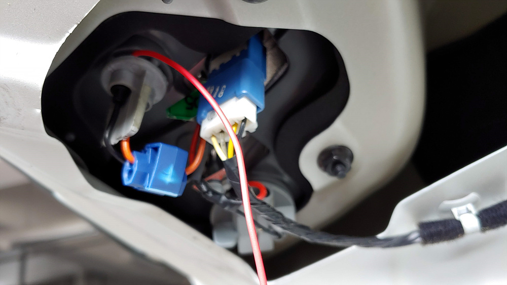 후진등의 +케이블이 너무 짧아서 후진등 전구의 + 전극에 케이블을 직접연결했다.