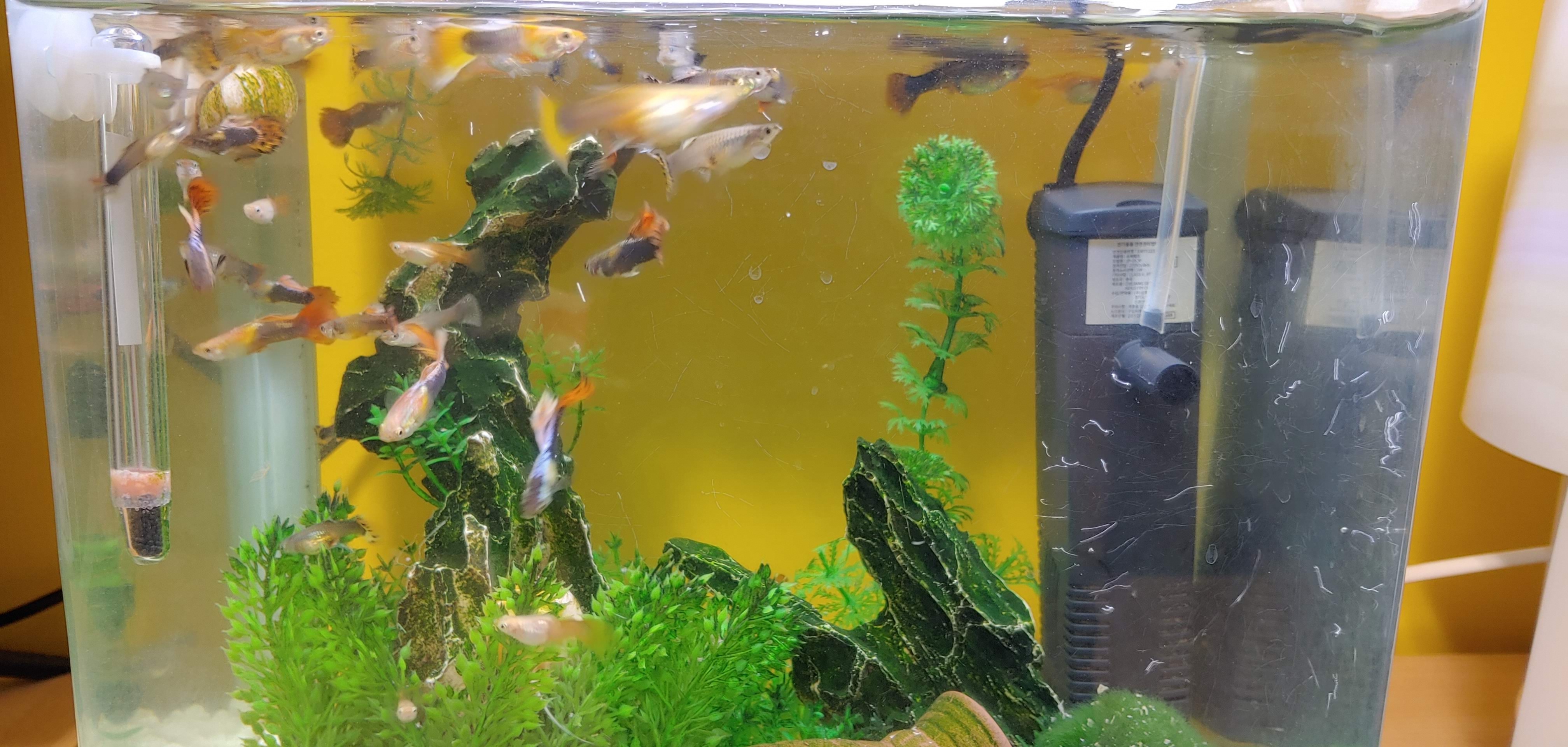 기포발생기를 안돌리면 산소가 부족해서 죽는 애들도 나오고..돌리자니 구피들이 너무 힘겨워하고..