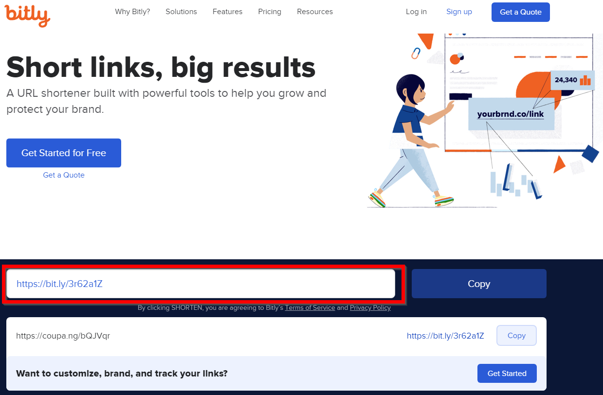 주소창에 "bitly.com"을 입력하면, 아래 사이트로 이동된다.
