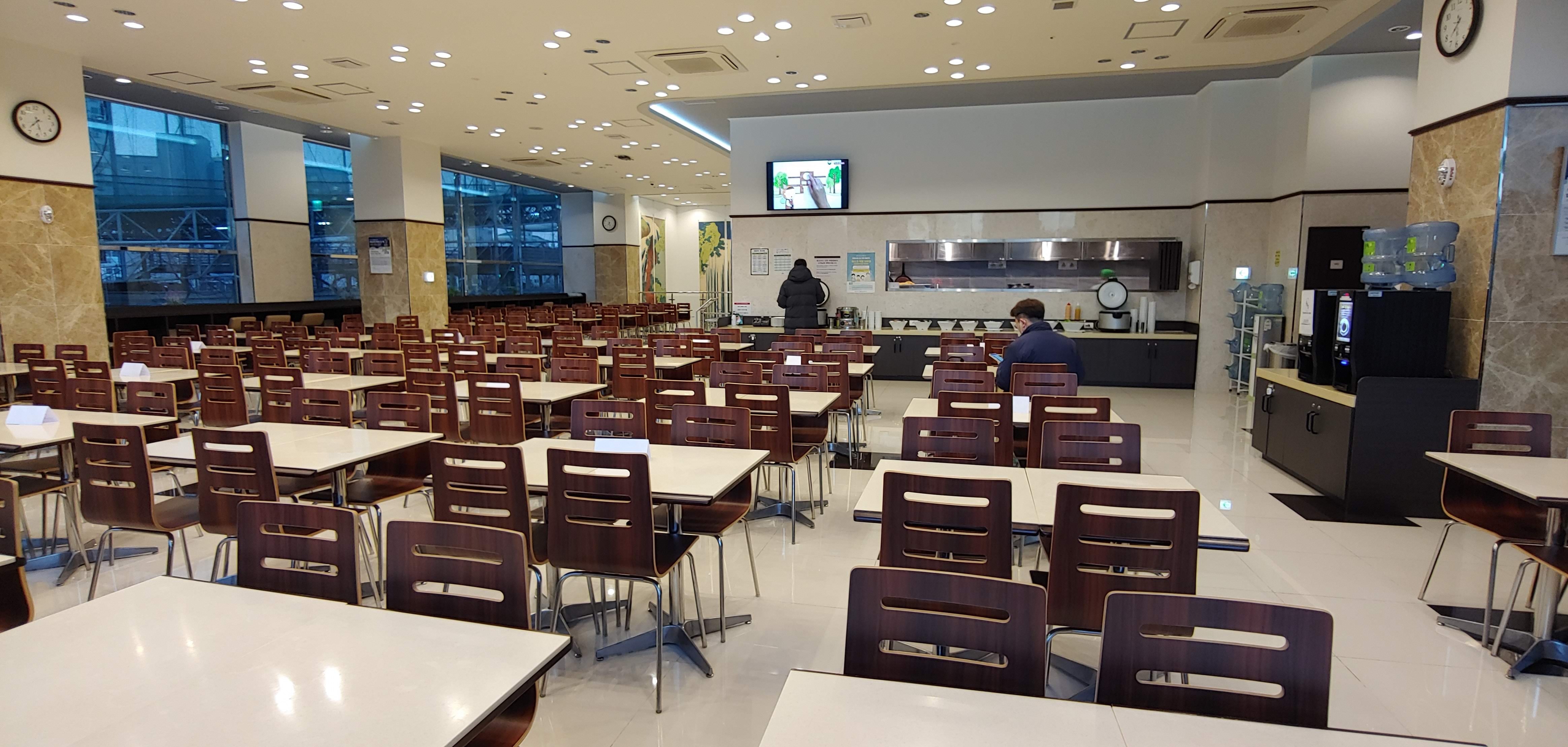 2층 식당. 아침 7시부터 식사할 수 있다.