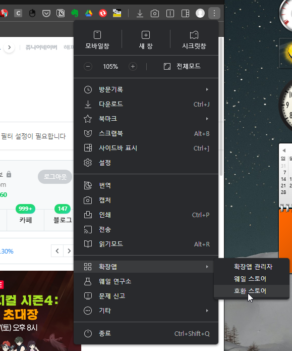 웨일브라우저에서 사용하는 크롬 익스텐션.