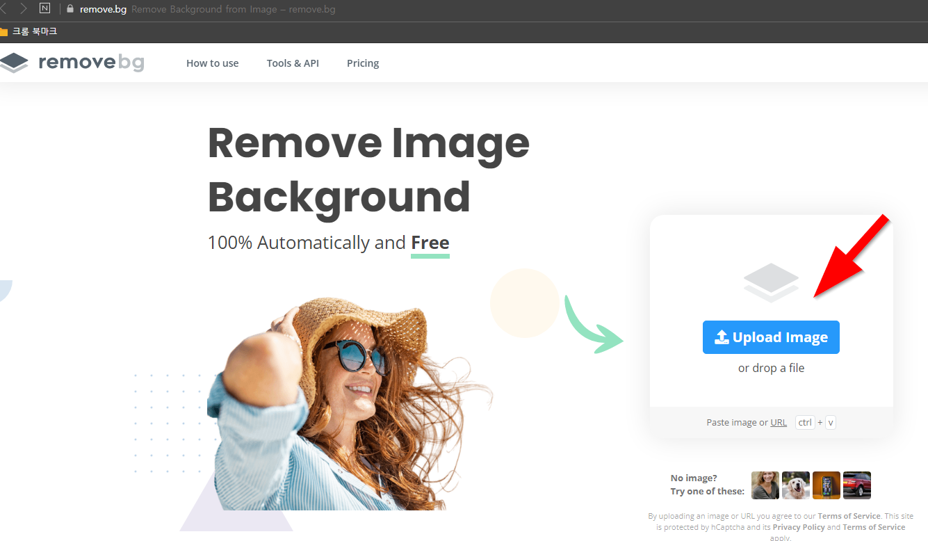 배경을 없앨 이미지를 끌고와서 Upload image라는 곳에 넣어준다.