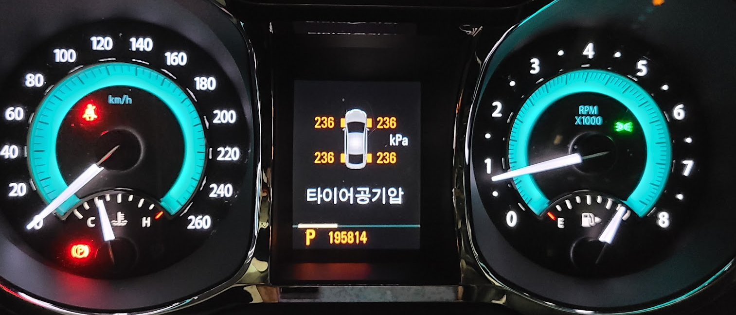 35psi로 설정한 후 체크해보니 236kPa로 정확하게 주입되어있다.